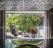 На цокольном этаже оборудованы хамам, восточная комната отдыха, помещения для хранения вещей и еще один санузел. В доме панорамное остекление, поэтому всегда много света.