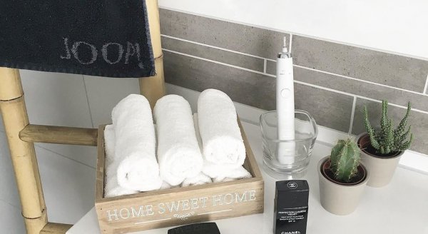 Возможно, вы удивитесь, но такие простые вещи тоже добавляют уюта и делают интерьер интереснее. Выбирайте полотенца одного цвета, желательно белого или любого другого пастельного оттенка.