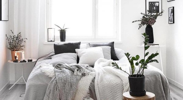 Многослойность в интерьере актуальна последние несколько сезонов. Не оставляйте мебель пустой — пусть на кровати будет несколько подушек разных размеров, а также небрежно уложенный плед. Кстати, это правило актуально и для дивана и кресел в гостиной.
