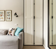 Что касается систем хранения, от идеи отдельной гардеробной отказались сразу — она съедает много пространства. А вот компактные, отдельно стоящие шкафы и комоды в комнатах — отличный вариант для тех, кто не прочь через некоторое время сделать перестановку.